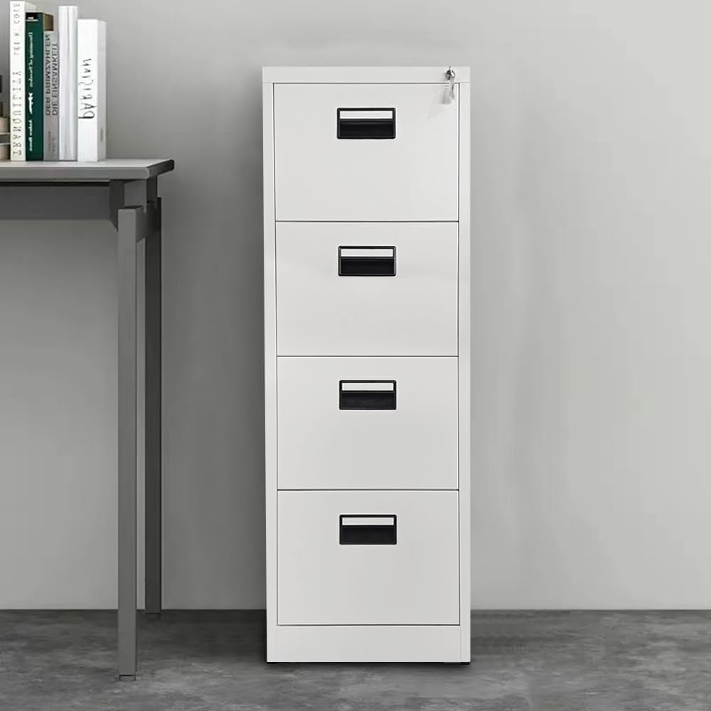 Explore top-quality furniture built for functionality and style. Overview: The 4-Drawers Steel Office File Cabinet is designed to provide secure and efficient storage for your office documents and files. Combining robust construction with a sleek, professional design, this file cabinet is ideal for maintaining an organized and productive workspace. Key Features: Durable Construction: Made from high-quality steel, ensuring long-lasting durability and resistance to daily wear and tear. Secure Locking Mechanism: Equipped with a central lock that secures all four drawers simultaneously, providing enhanced security for sensitive documents. Smooth Drawer Operation: Each drawer is fitted with ball-bearing slides for smooth and quiet operation, allowing for easy access to files. Ample Storage Space: Four spacious drawers provide ample storage for letter-sized, legal-sized, and A4 documents. Sleek Design: Features a clean, modern design with a powder-coated finish that complements various office decors. Specifications: Material: High-quality steel with powder-coated finish Dimensions: Height: 1320mm (52 inches) Width: 460mm (18.1 inches) Depth: 620mm (24.4 inches) Drawer Dimensions: Height: 305mm (12 inches) Width: 390mm (15.4 inches) Depth: 570mm (22.4 inches) Color Options: Available in black, gray, white, and other finishes Weight Capacity: Each drawer supports up to 50 lbs Benefits: Enhanced Security: The central locking mechanism ensures that all drawers are securely locked, protecting confidential documents and valuable items. Durability: Constructed from high-quality steel, this cabinet is designed to withstand the demands of daily office use. Organization: Four spacious drawers provide ample space for organizing and storing various types of documents, helping maintain a tidy workspace. Smooth Operation: Ball-bearing slides ensure that drawers open and close smoothly and quietly, enhancing user convenience. Professional Appearance: The sleek and modern design enhances the aesthetic appeal of any office space, creating a professional and organized environment. Safety: The anti-tip mechanism ensures that the cabinet remains stable and prevents accidents caused by multiple open drawers. Ideal For: Corporate offices Home offices Educational institutions Medical offices Government offices Package Includes: 1 x 4-Drawers Steel Office File Cabinet 2 x Keys Assembly instructions (if required) All necessary tools and hardware for assembly (if required) Maintenance: To maintain the cabinet’s appearance and functionality, regularly dust the surfaces with a soft, dry cloth. Clean spills immediately with a damp cloth and mild detergent. Avoid using abrasive cleaners or solvents to prevent damage to the finish. Periodically check and tighten any bolts or screws to ensure the cabinet remains stable and secure. The 4-Drawers Steel Office File Cabinet combines functionality, durability, and modern design, making it an excellent choice for enhancing the organization and security of any office environment. Its high-quality construction and sleek appearance ensure it will be a valuable addition to your workspace