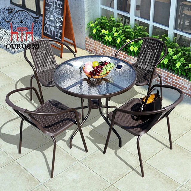Transform your patio, balcony, kitchen nook, or cafe into a stylish and inviting space with this complete 1-Piece Round Glass Table and Chairs Set. This set is designed for both aesthetic appeal and practical functionality, perfect for intimate dining or casual conversation areas, whether indoors or outdoors.