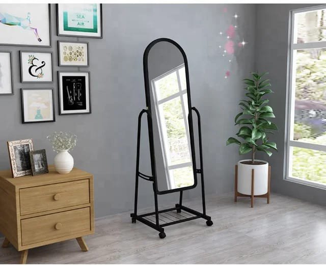 Looking for a mirror that combines contemporary design with everyday functionality? This full-length black dressing mirror with wheels is a versatile and elegant solution for both home and commercial settings. Designed with a sturdy mobile base, it allows you to move and reposition the mirror with ease—ideal for outfit checks, grooming, and enhancing room aesthetics.