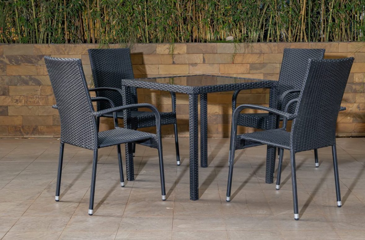 This premium 5-piece Outdoor Wicker Dining Set in Kenya is the perfect addition to your home, designed to transform your patio, garden, or balcony into a stylish dining oasis. It provides the ideal setting for hosting family barbecues (nyama choma), enjoying weekend brunches, or simply relaxing with a cup of coffee. Its sleek black finish and modern design bring a touch of elegance to any outdoor space.